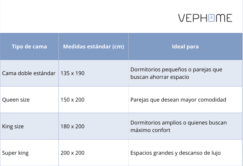 La elección del tamaño de una cama de matrimonio depende de las necesidades personales y también del espacio disponible en el dormitorio.