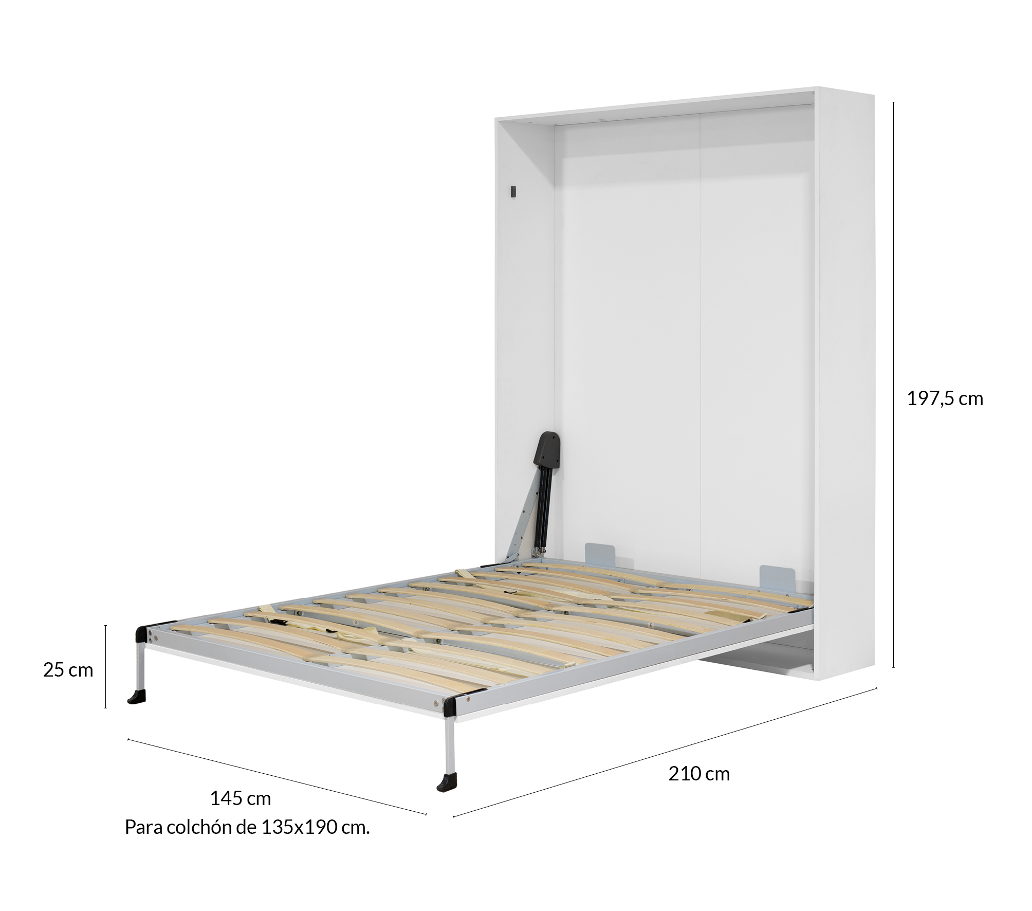 Optimiza tu espacio sin renunciar a la comodidad con nuestra cama abatible vertical para colchón de 135×190 cm. Diseñada para ofrecer funcionalidad y estilo, es la solución perfecta para dormitorios juveniles, apartamentos, estudios o habitaciones multifuncionales.
