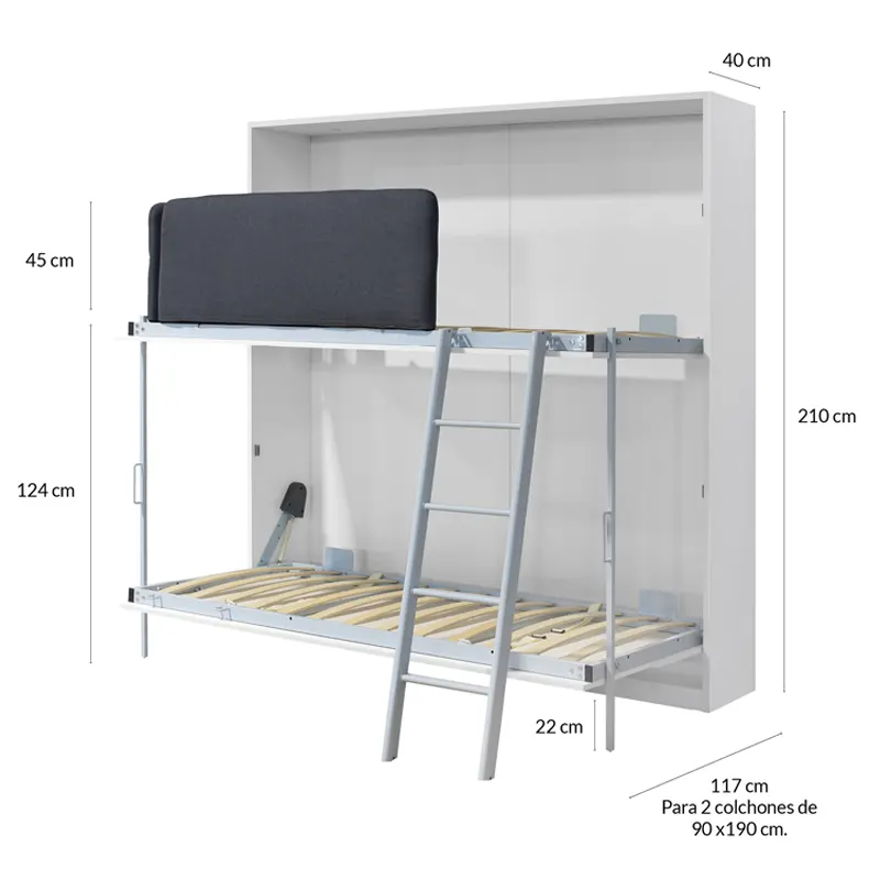 Una solución inteligente que ofrece dos camas completas en el espacio de una, perfecta para aprovechar cada metro sin renunciar a comodidad, seguridad y diseño.