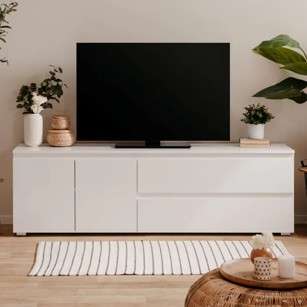 Mueble Tv Capetown 2 Puertas 2 Cajones 180X55X40 Blanco