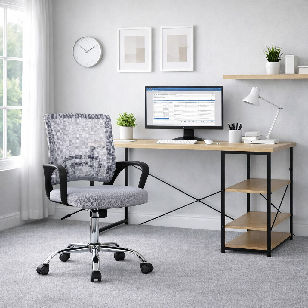 La Silla de Oficina en color gris está diseñada para brindar comodidad y funcionalidad durante la jornada laboral. Su diseño moderno y sobrio se adapta fácilmente a espacios de trabajo, estudio u oficina en casa.