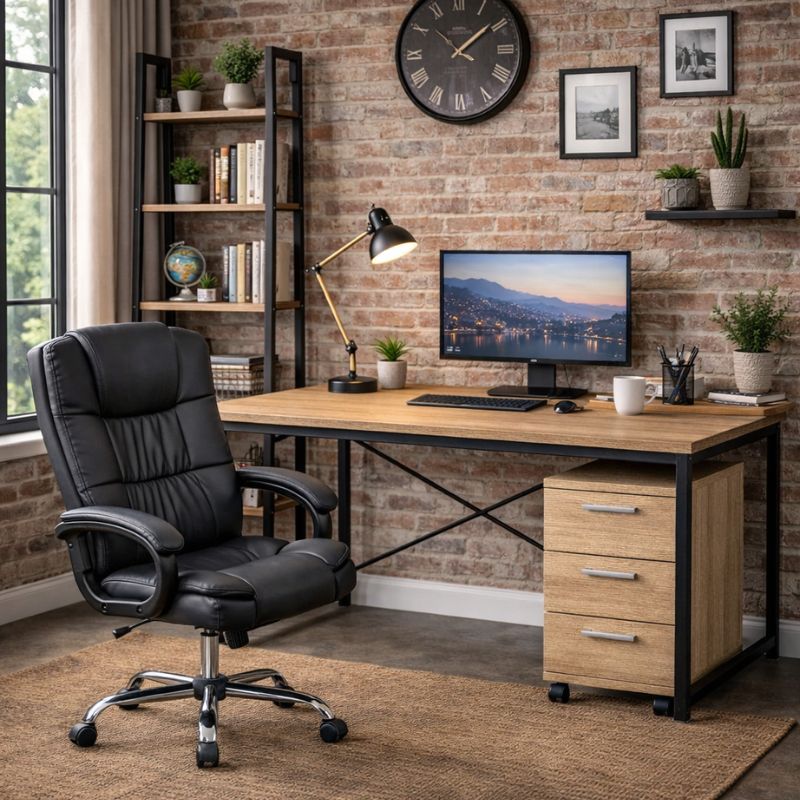 La Silla de Oficina en color negro es una excelente opción para espacios de trabajo, estudio u oficina en casa. Su diseño moderno y profesional se adapta fácilmente a cualquier ambiente, brindando comodidad y funcionalidad para el uso diario.