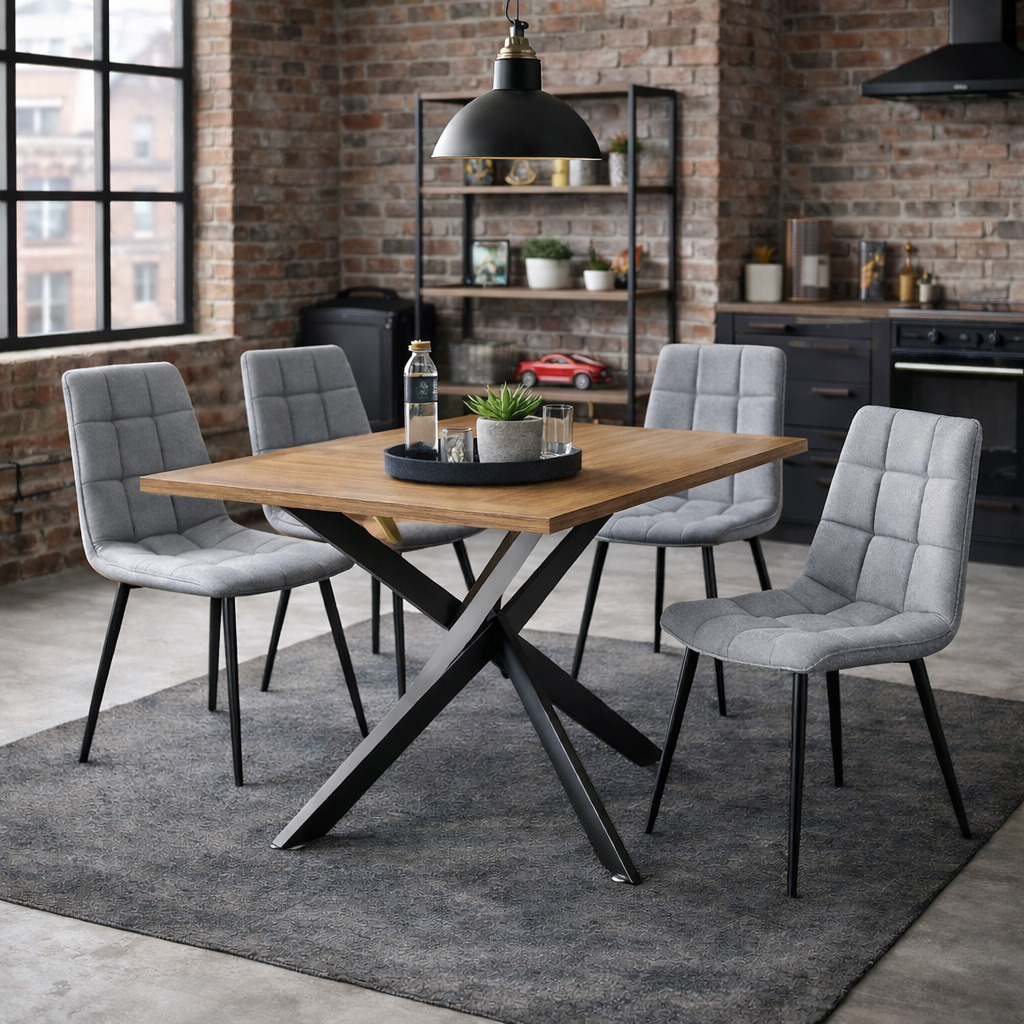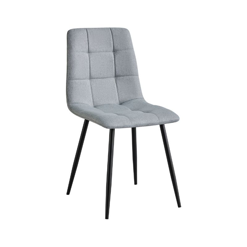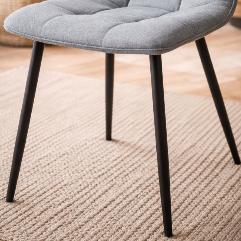 El juego de 4 sillas de tela en color gris con patas negras ofrece una combinación perfecta de confort y estilo contemporáneo. Su tapizado en tela y las patas negras aportan un toque moderno y sofisticado. Ideales para comedores actuales.